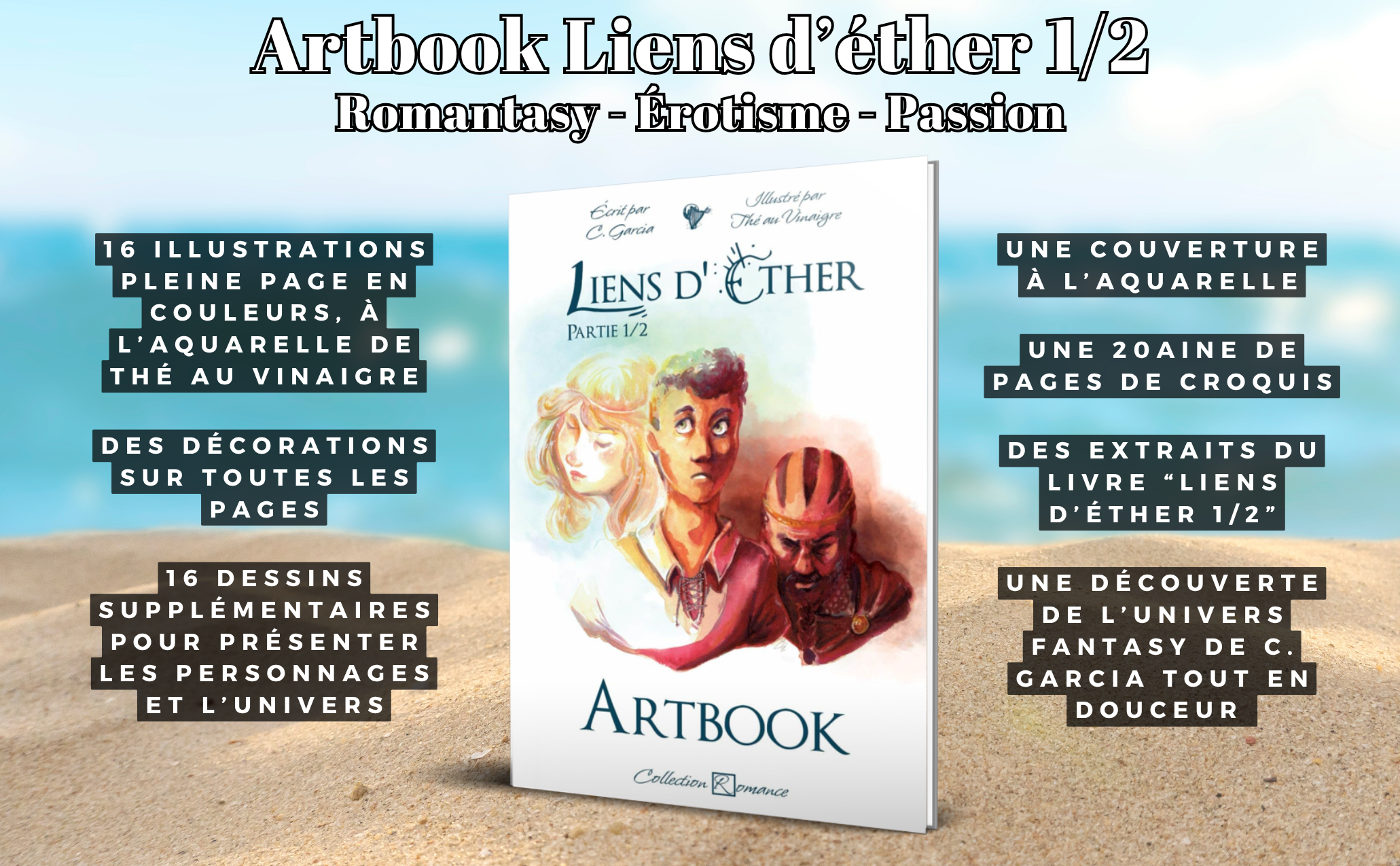 à l’aquarelle, et écrit par C. Garcia. Dans cet Artbook, découvrez seize magnifiques dessins pleine page en couleurs, accompagnés d’explications,