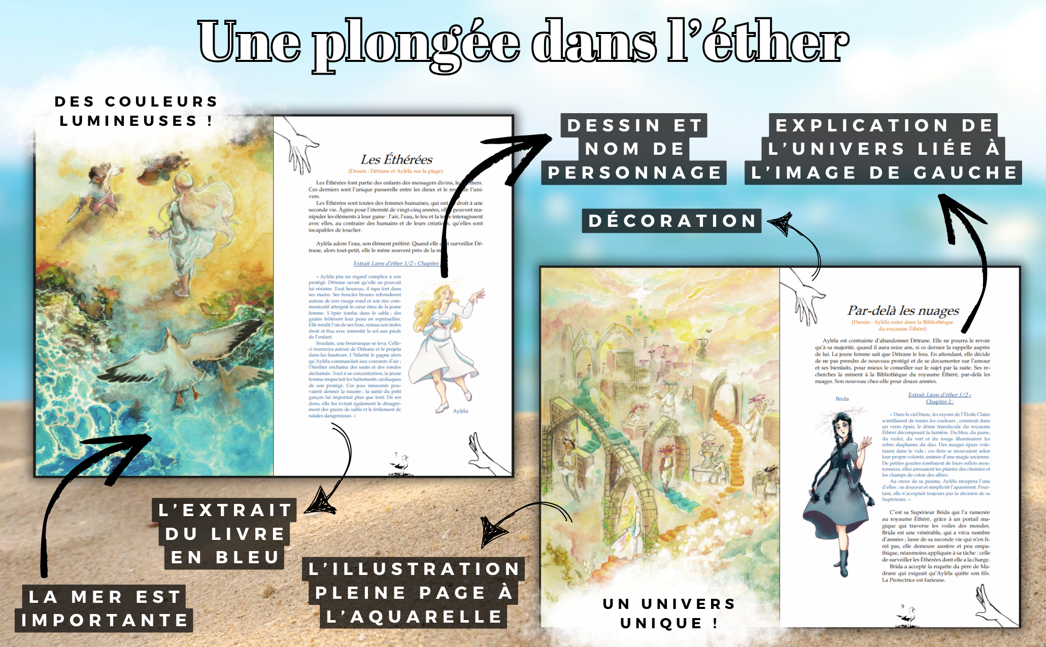 d’extraits du livre et de vignettes supplémentaires pour mieux vous faire voyager auprès d’Ayléla et de Détrane,