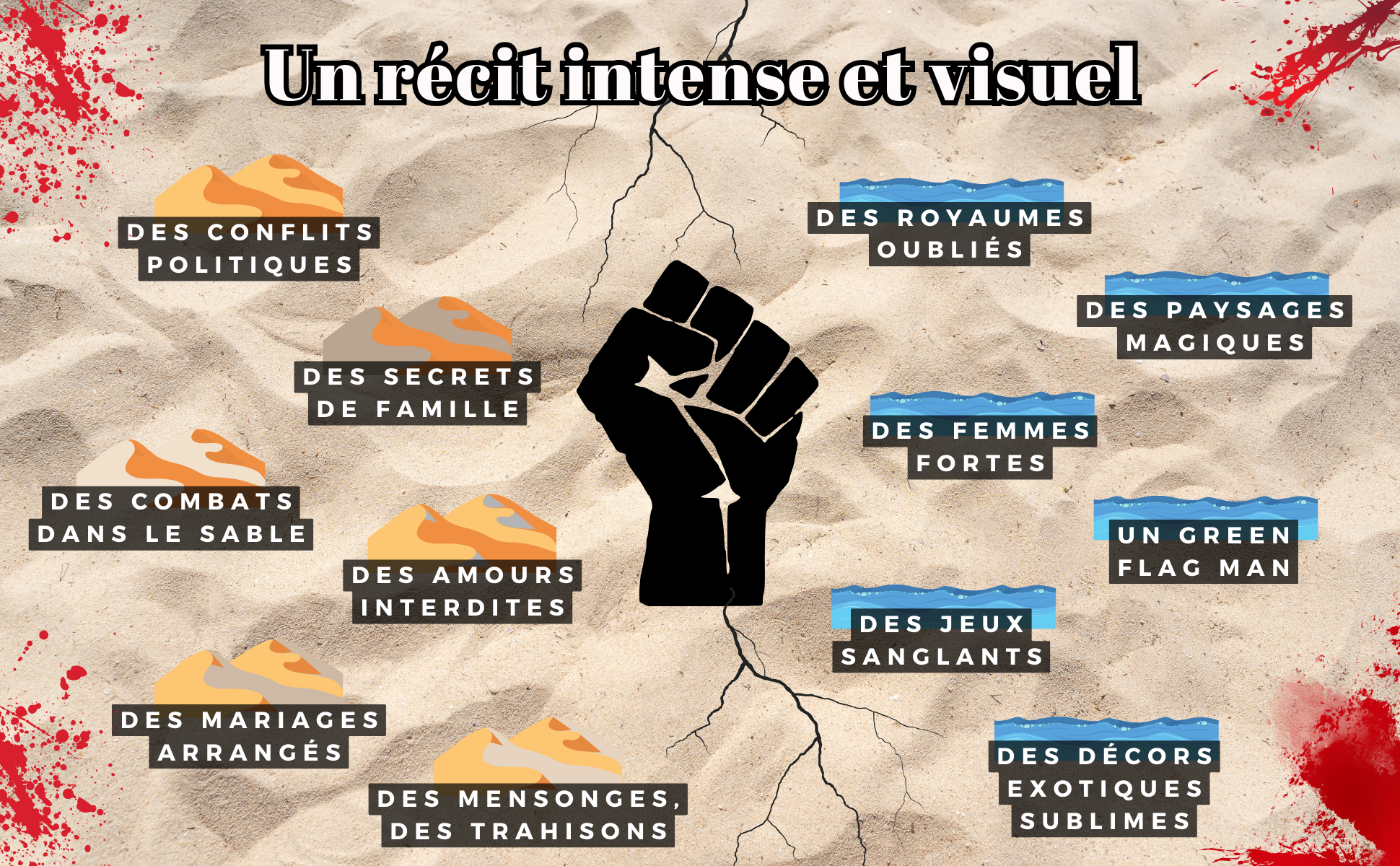 Le récit navigue habilement entre des thématiques fortes (racisme et sexisme en tête de liste !) et un univers où jeux sanglants, complots politiques, mensonges et trahisons se mêlent à des valeurs universelles comme la famille, l’amitié, la loyauté, le courage, l’amour… et la haine. Les scènes de combat sont magnifiquement décrites, l’intrigue riche en rebondissements et révélations, et les moments plus calmes permettent d’en apprendre davantage sur le monde et les personnages. Impossible de s’ennuyer !