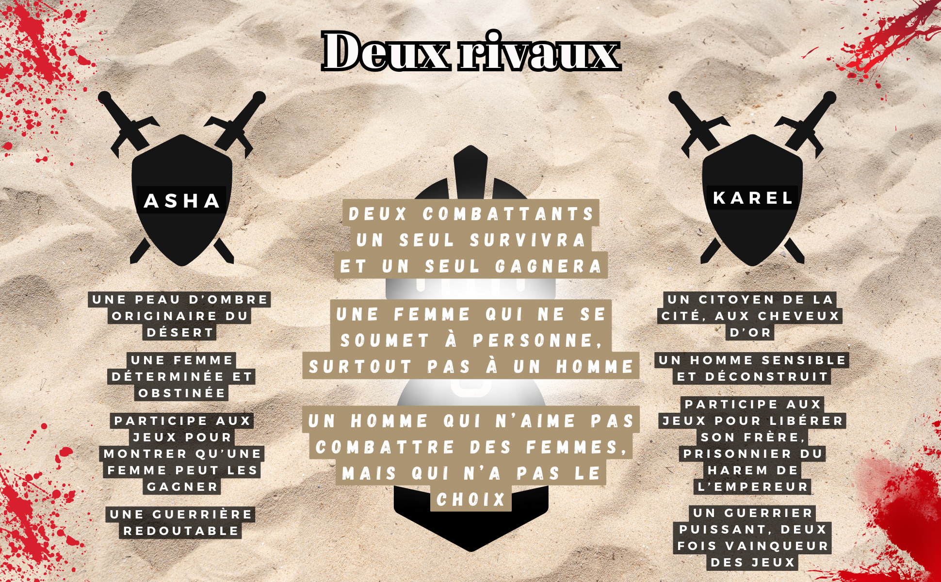 Karel, l’enfant-soleil, est le champion incontesté des jeux. Mais cette année, il ne combat pas pour la gloire : son jeune frère, capturé pour son albinisme, restera esclave, enchaîné au fils de l'Empereur, s’il perd. Trois victoires, une dernière chance, une promesse de liberté.