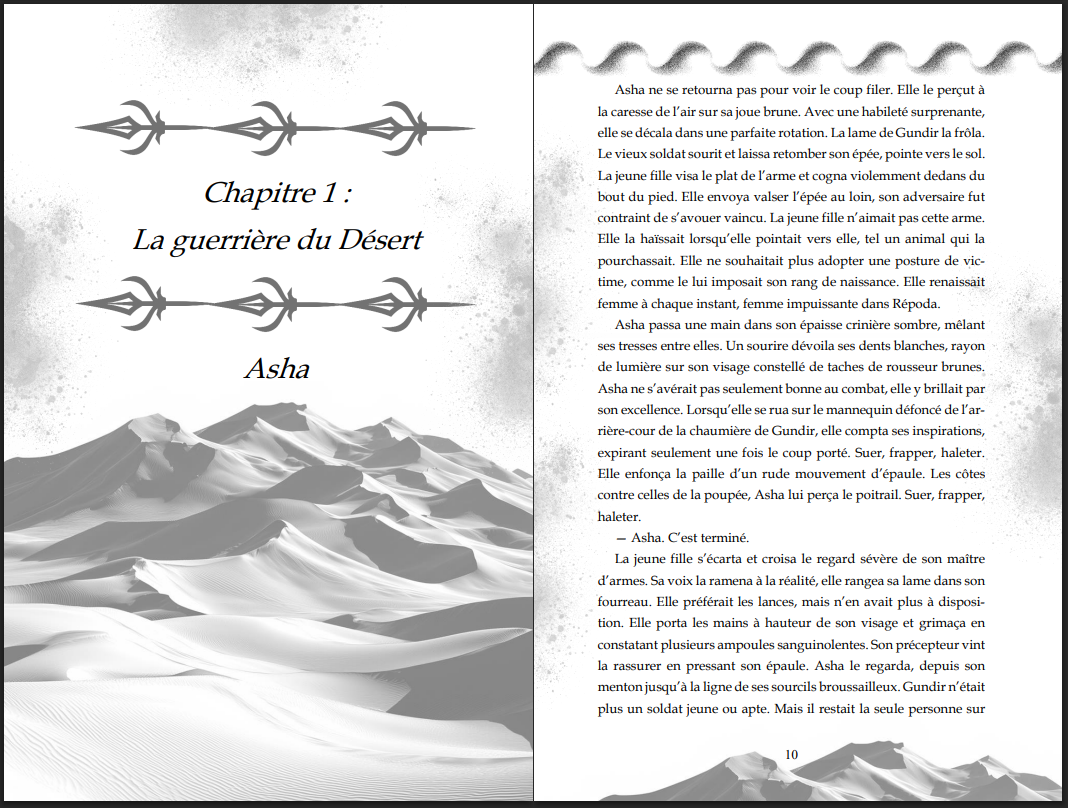 Dans la cité millénaire de Répoda, les jeux de l’arène décident de tout : la gloire, la liberté… ou la mort. Asha, née dans les sables du grand Désert, est une peau d’ombre, une étrangère méprisée. Guerrière farouche et fière de ses origines, elle entre dans l’arène pour défier le pouvoir patriarcal et venger sa mère, favorite soumise de l’Empereur. Pour les femmes opprimées, elle n’a pas le droit d’échouer.