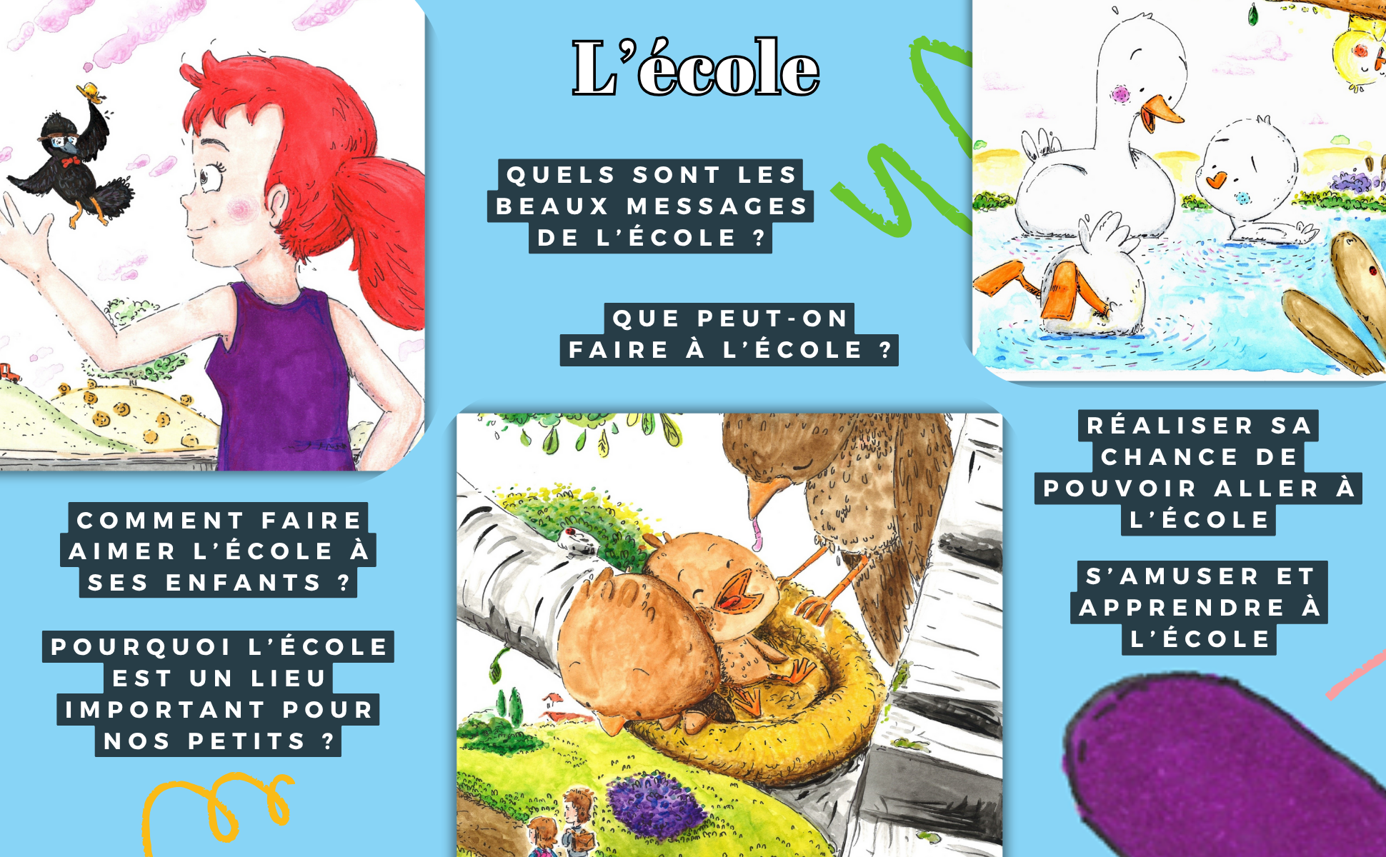 🌙 "De quoi peuvent bien rêver les petits animaux de la ferme en regardant passer Ophéline et Arthur avec leur cartable sur le dos ? Ils rêvent d'aller à l'école mais leurs mamans ne semblent pas d'accord ! Heureusement , Edouard le corbeau a une brillante idée pour aider ces petits animaux. Ce joli petit album va nous présenter plusieurs des activités que l'on peut faire à l'école maternelle sans oublier une des plus importantes : se faire de nouveaux amis ! C'est un album idéal pour donner l'envie d'aller à l'école mais aussi pour développer le vocabulaire des animaux de la ferme (le nom des petits, leur lieux d'habitation). Les illustrations sont pleines de tendresse et de poésie. Elles fourmillent de détails qui pourront peupler les rêves des jeunes enfants ! Je recommande cet album pour préparer un enfant à l'entrée en maternelle.
