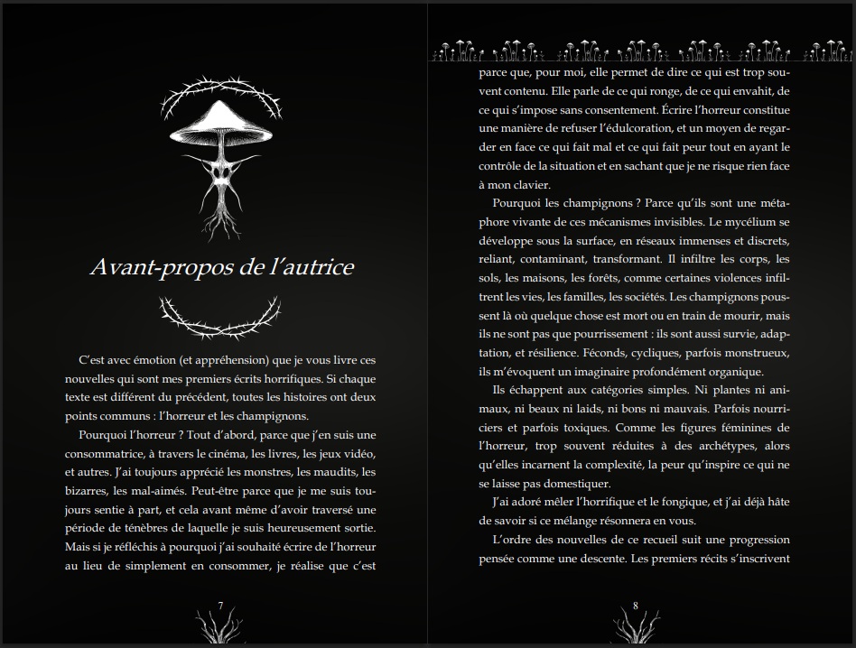 🌙 "Voilà un recueil de 15 nouvelles d'horreur autour d'une thématique commune: Les Champignons. Sujet qui me passionne depuis un moment maintenant. C'est donc avec un engouement non dissimulé que je me suis jeté dessus à sa sortie, après plusieurs mois d'attente. Et le résultat est à la hauteur de mes attentes. On salue au passage la très belle édition et le travail de Morgane Caussarieu sur la couverture qui répond parfaitement à la promesse du recueil.